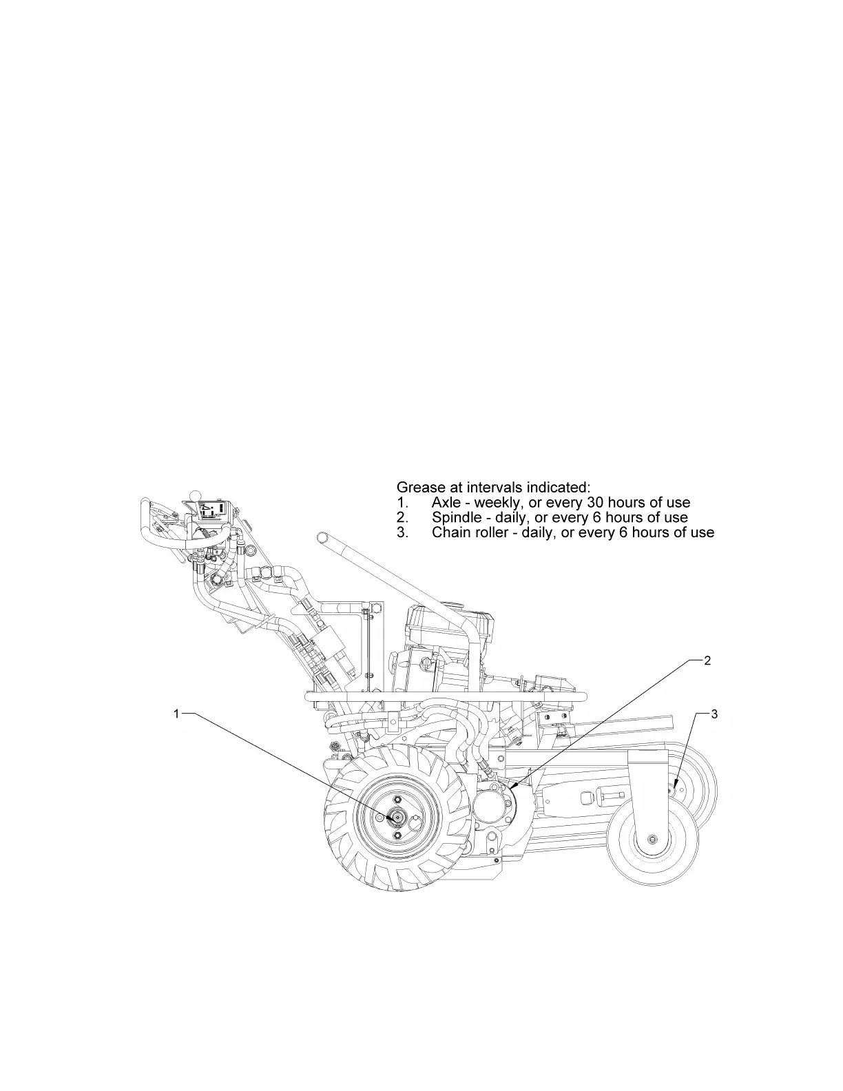 Grease at the intervals indicated per the illustration of grease lubrication points. There is also a grease