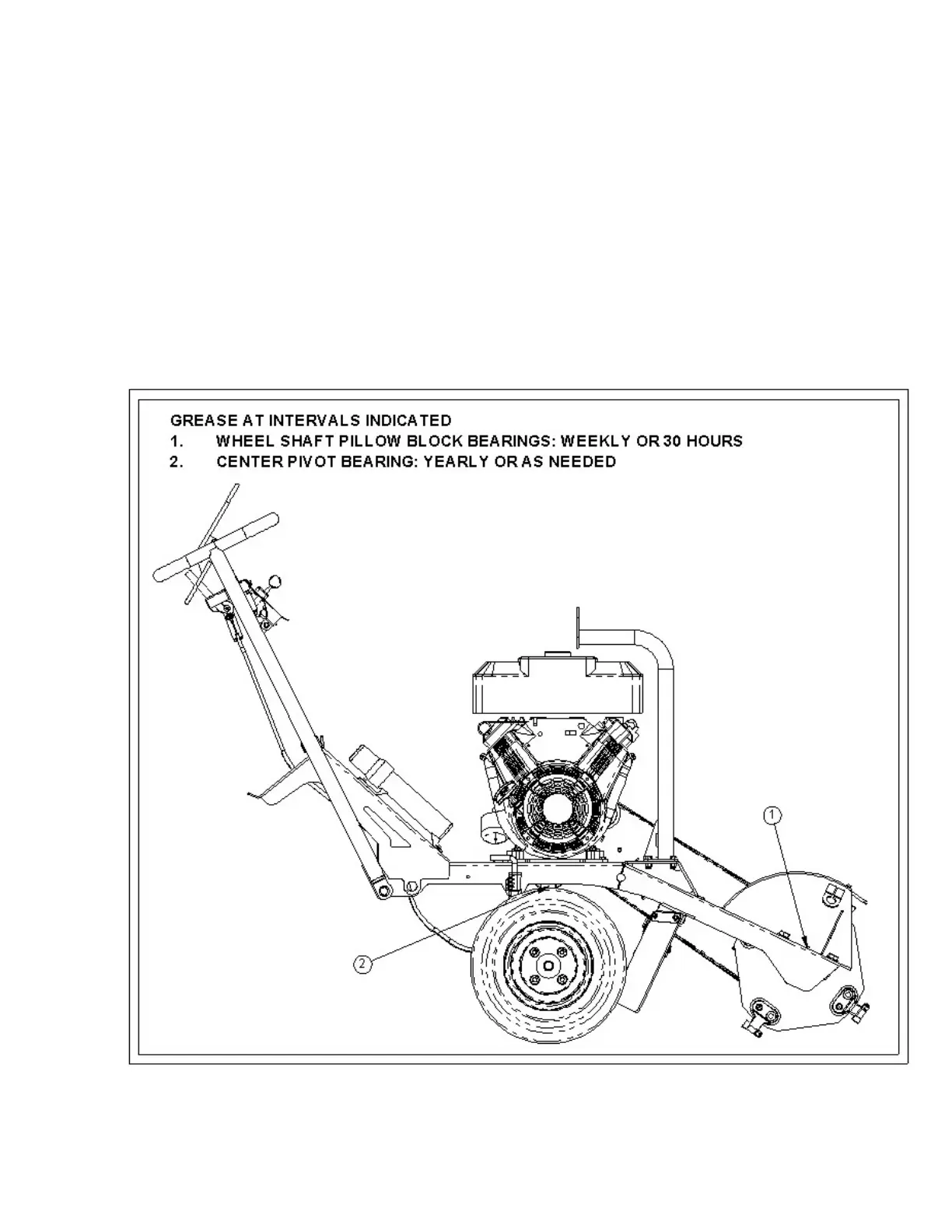 Grease at the intervals indicated per the illustration of grease lubrication points. There is also a grease