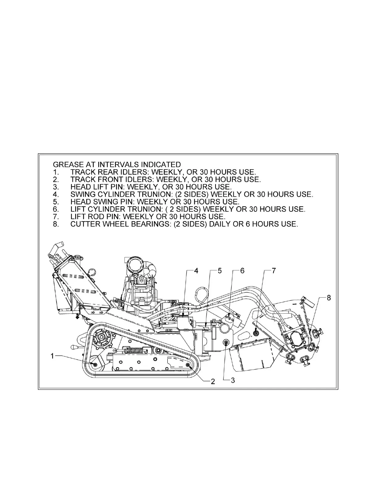 Grease at the intervals indicated per the illustration of grease lubrication points. There is also a grease