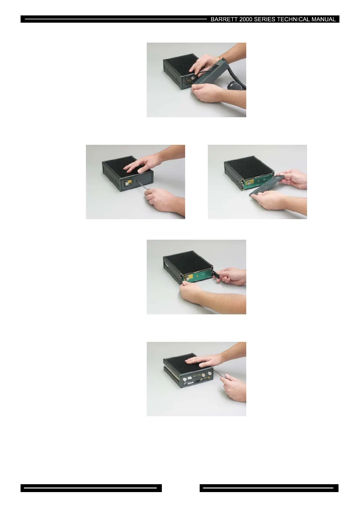 Using the Barrett tool or an M4 Allen key remove two M4 x 16 cap screws on the rear panel