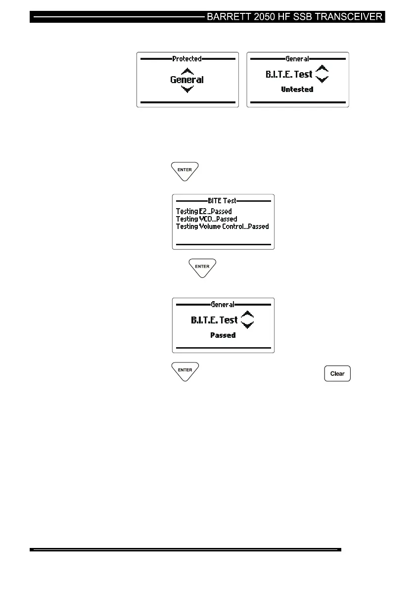 This section runs the transceiver’s Built-in Test Equipment (B.I.T.E.) tests. The