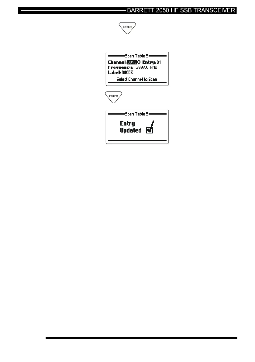 Use the Scroll keys to select the new channel for the scan table