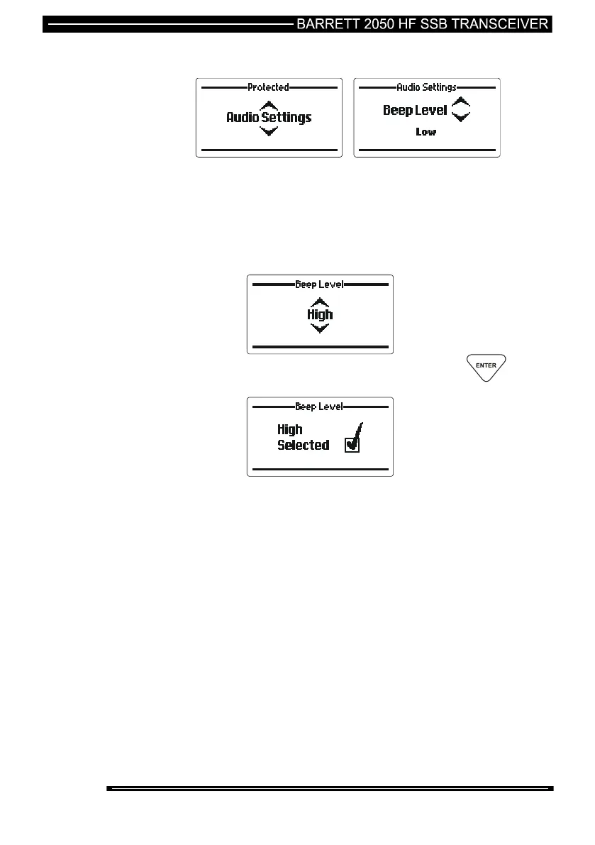 Use the Scroll keys to select the “beep” volume level required
