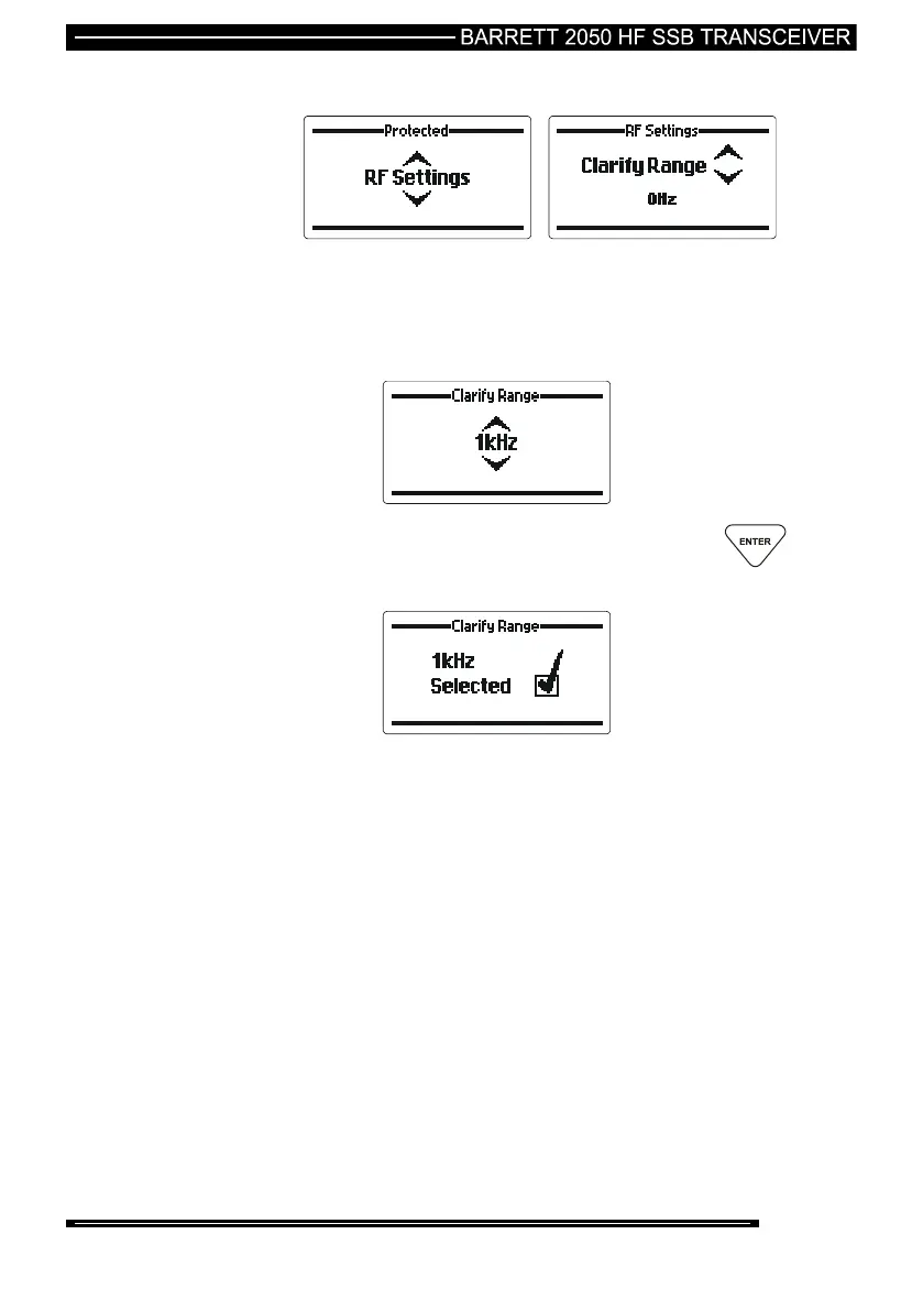 Use the Scroll keys to select the clarifier range required