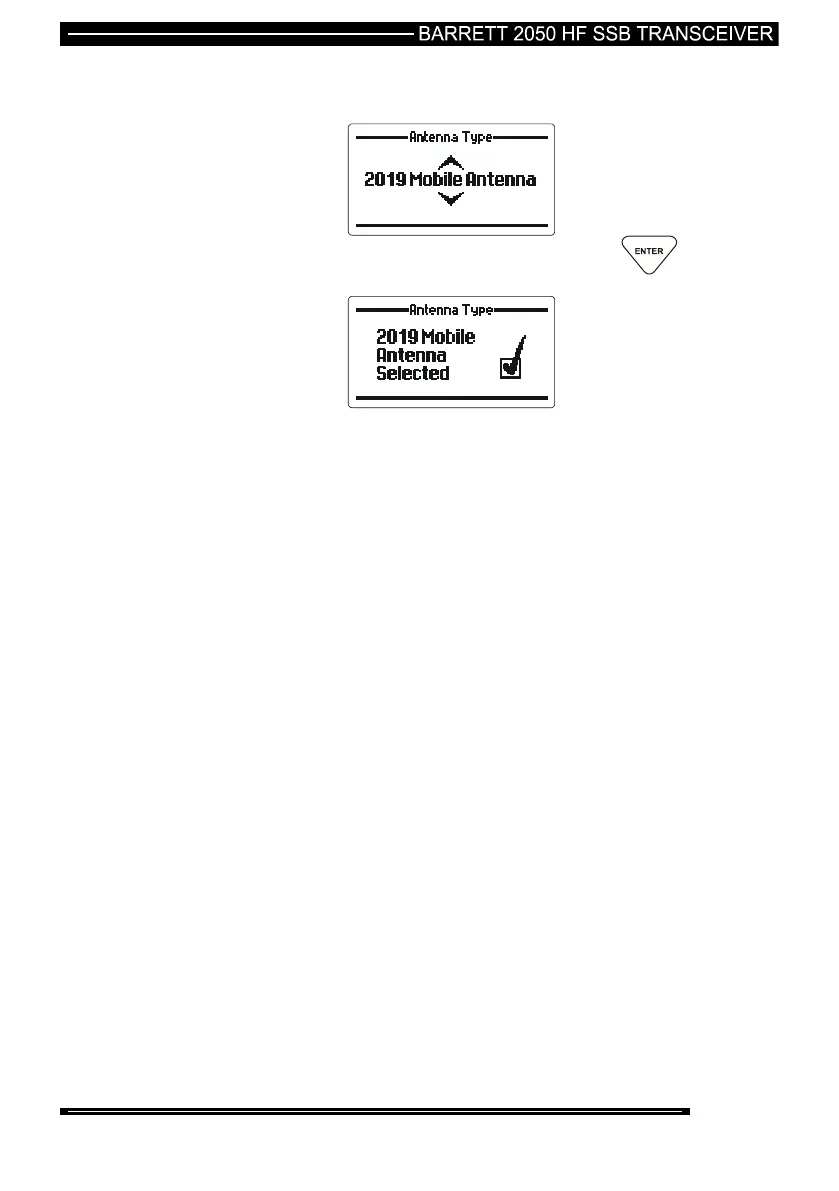 Use the Scroll keys to select the type of antenna or a linear