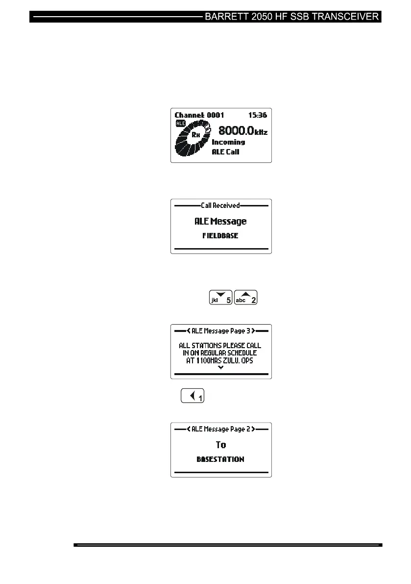 When an ALE link to your station commences the following is displayed on your