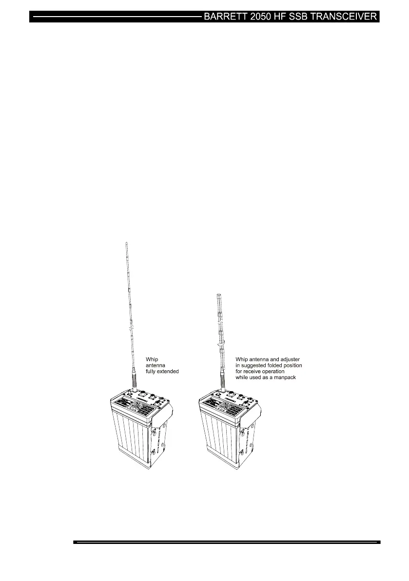 The Barrett manpack can be used with the 10 metre throw over long wire provided