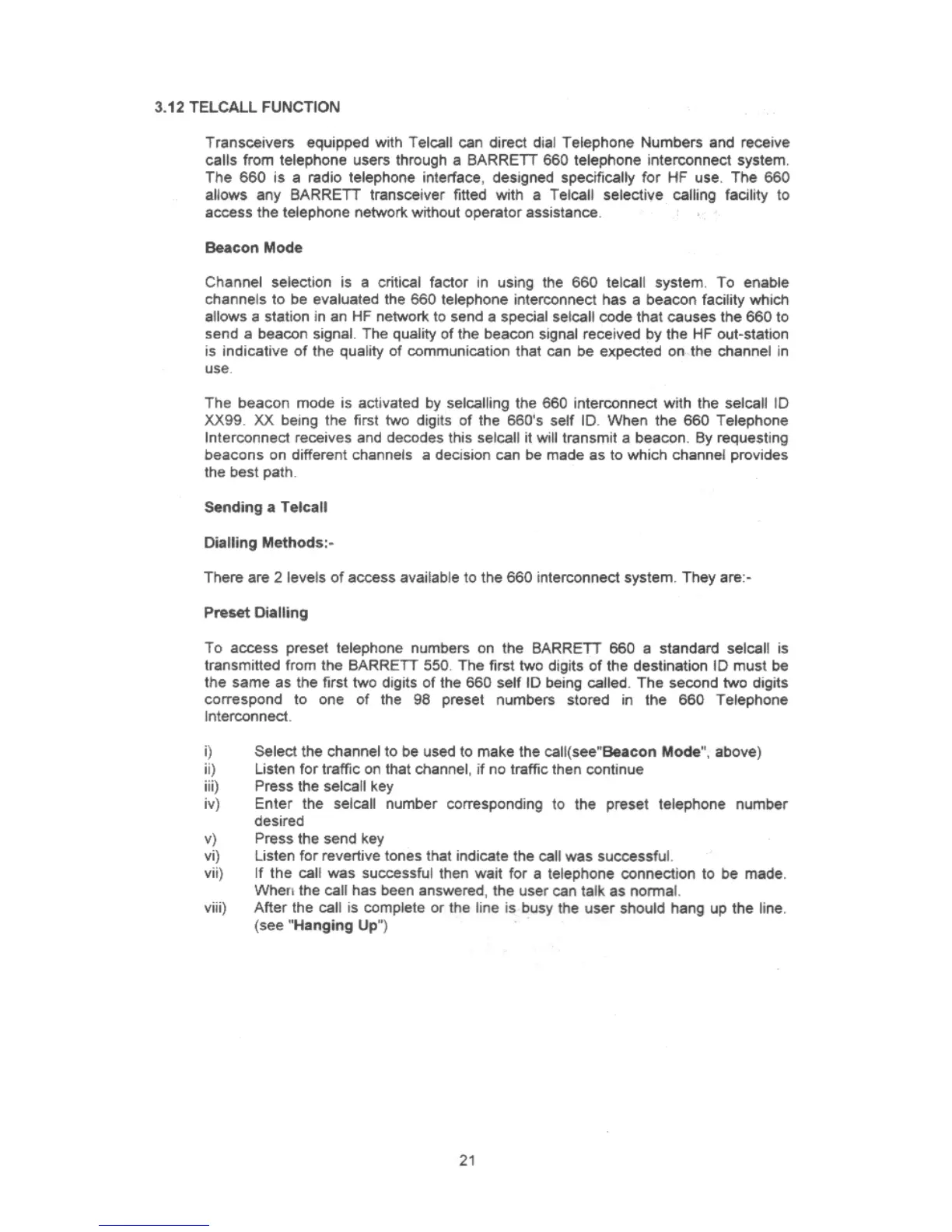 Barrett 550 - Telcall Function