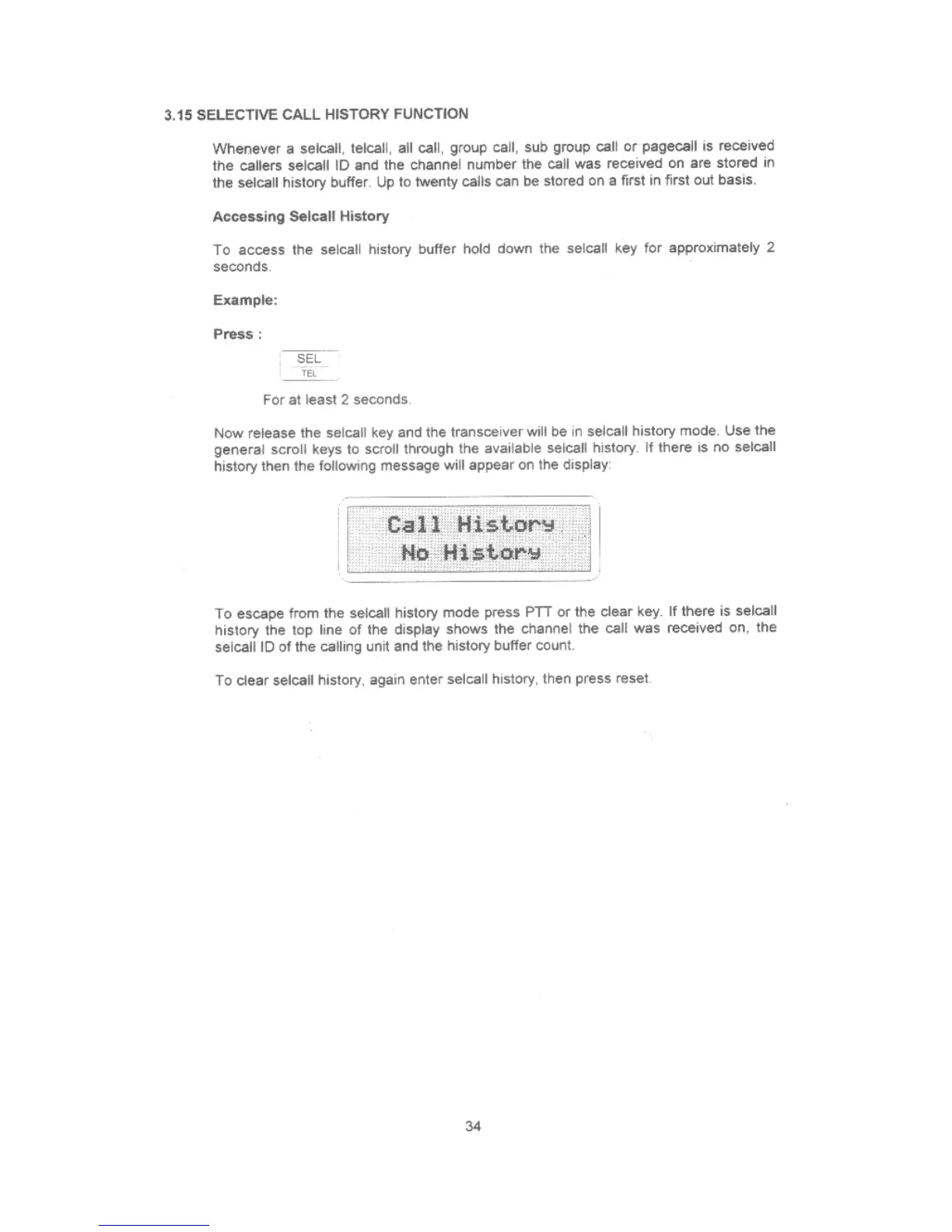 Barrett 550 - Selective Call History Function; Accessing Selcall Hisory