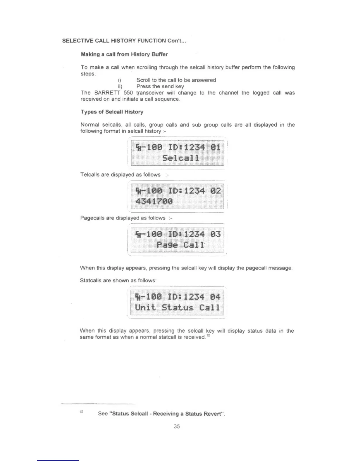 Barrett 550 - Making a Call from History Buffer; Types of Selcall History
