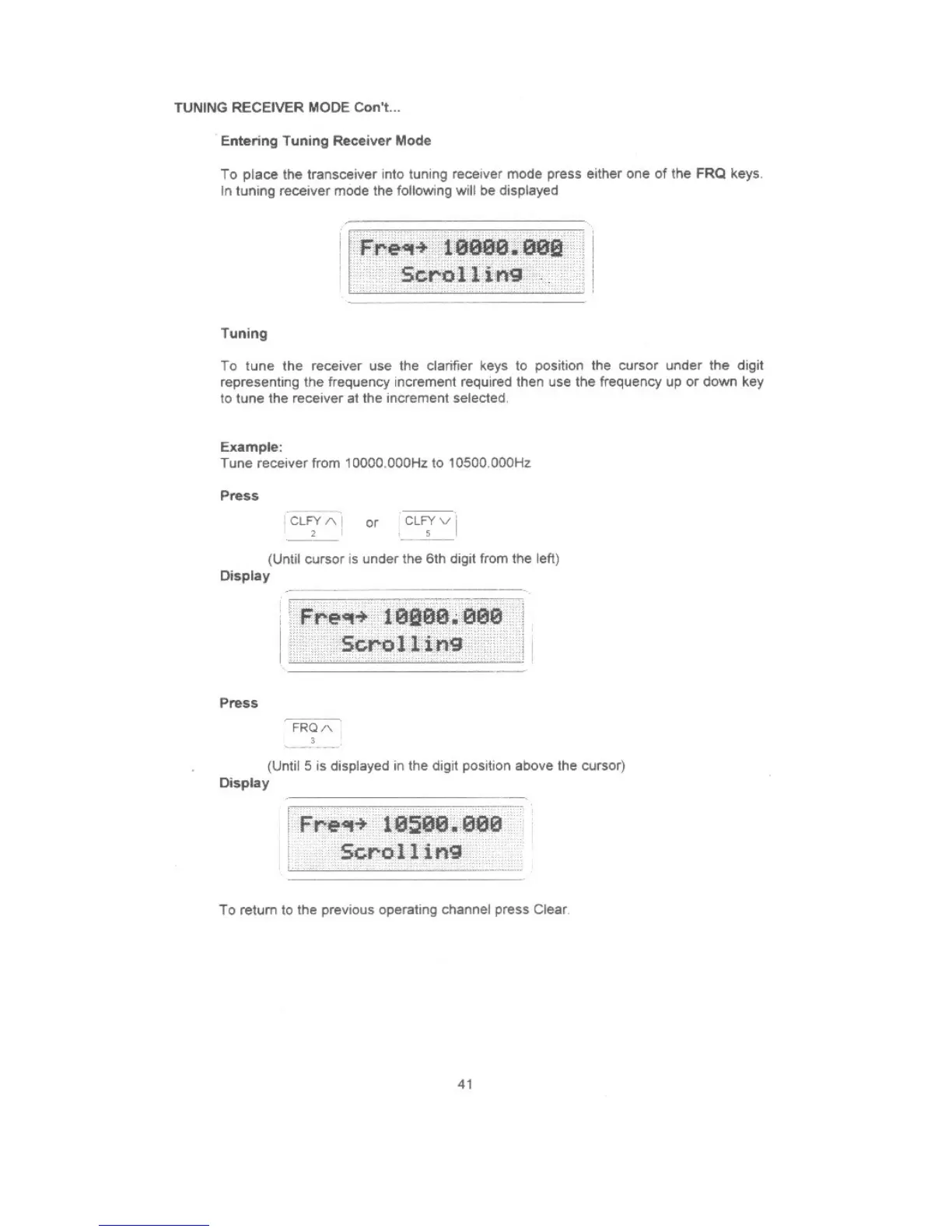 Barrett 550 - Entering Tuning Receiver Mode; Tuning