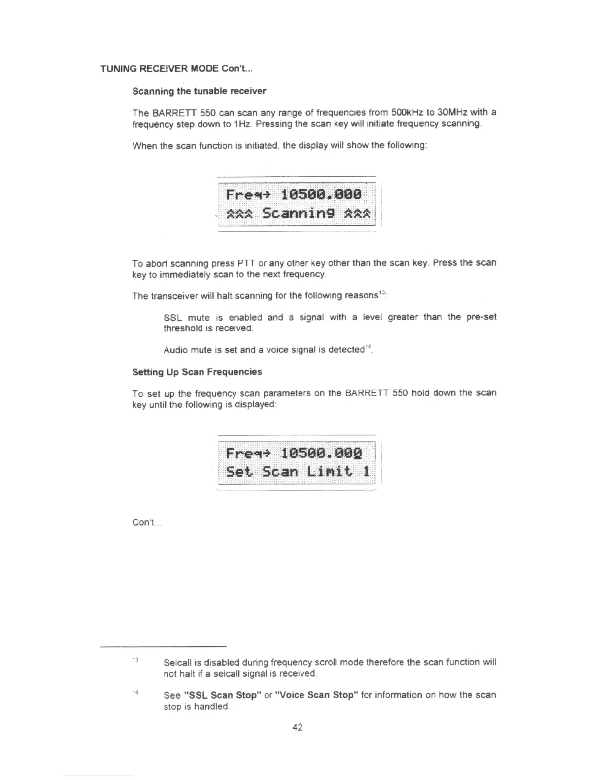 Barrett 550 - Scanning the Tunable Receiver; Setting up Scan Frequency