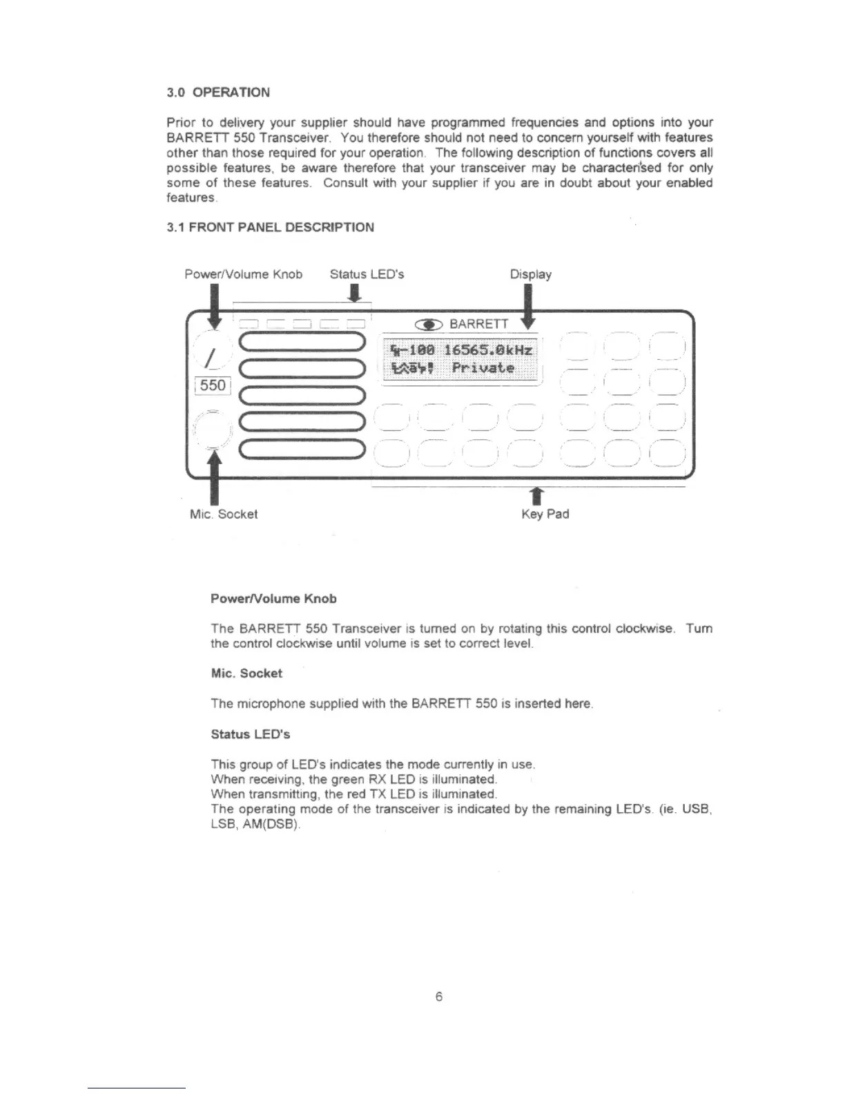Barrett 550 - Transceiver Operation; Front Panel Description