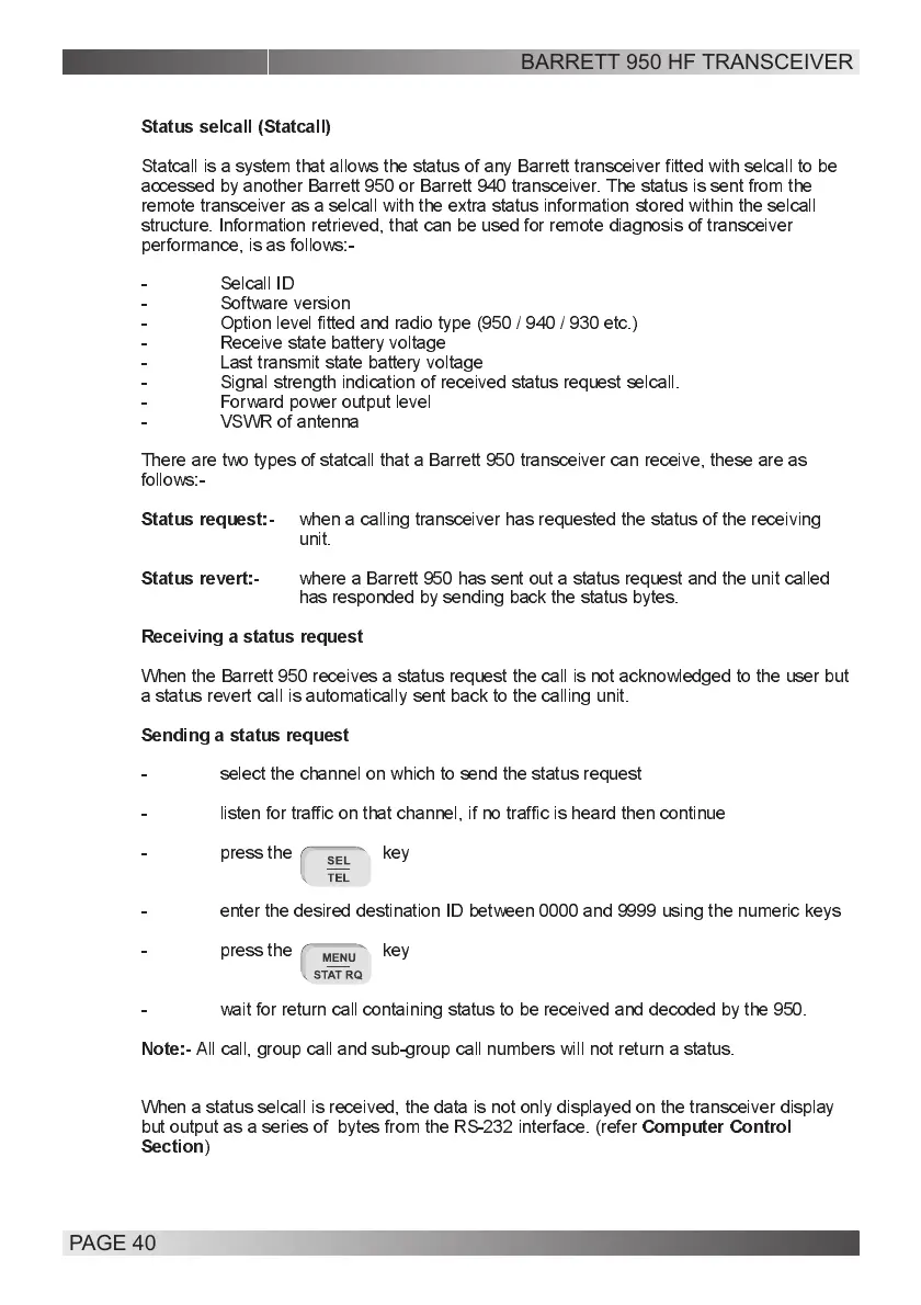 accessed by another Barrett 950 or Barrett 940 transceiver. The status is sent from the