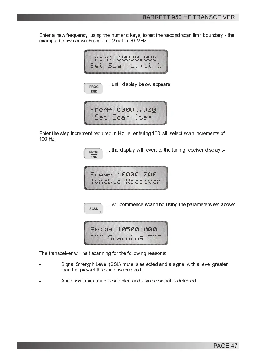 Enter a new frequency, using the numeric keys, to set the second scan limit boundary - the