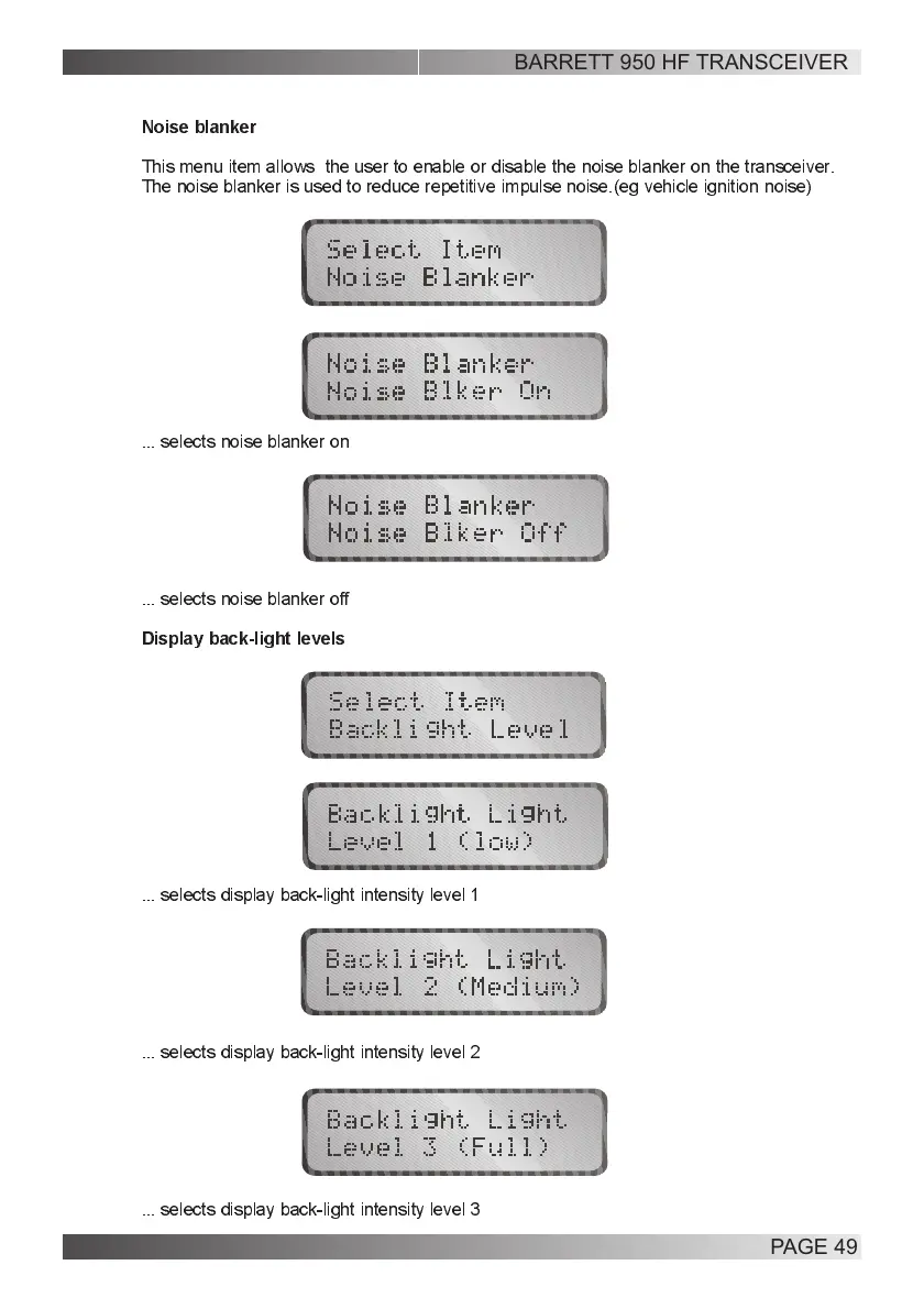 ... selects display back-light intensity level 3