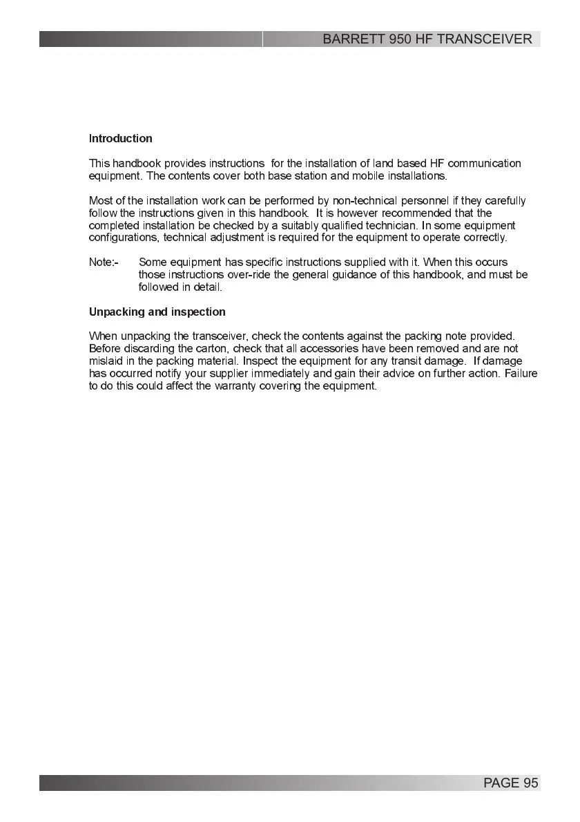 When unpacking the transceiver, check the contents against the packing note provided.