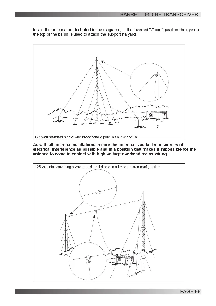 Install the antenna as illustrated in the diagrams, in the inverted 'V' configuration the eye on