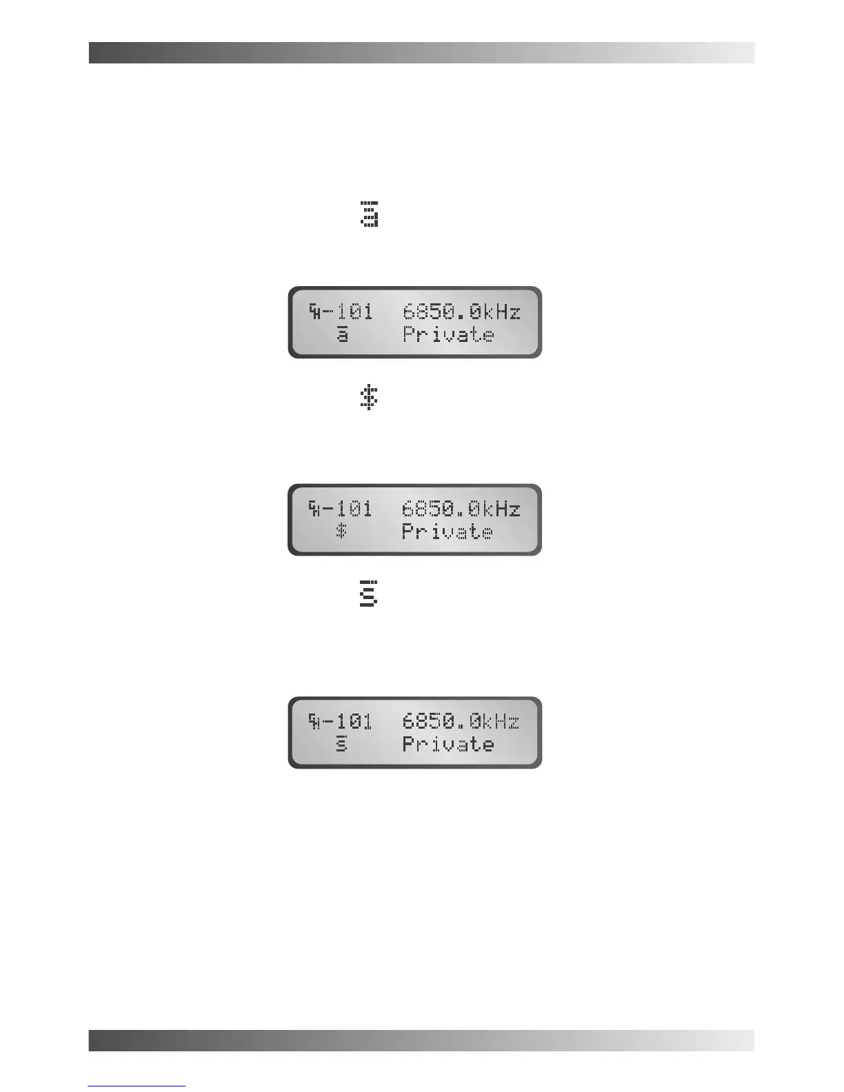 Pressing the mute key will select the mute function required. A character indicating the mute