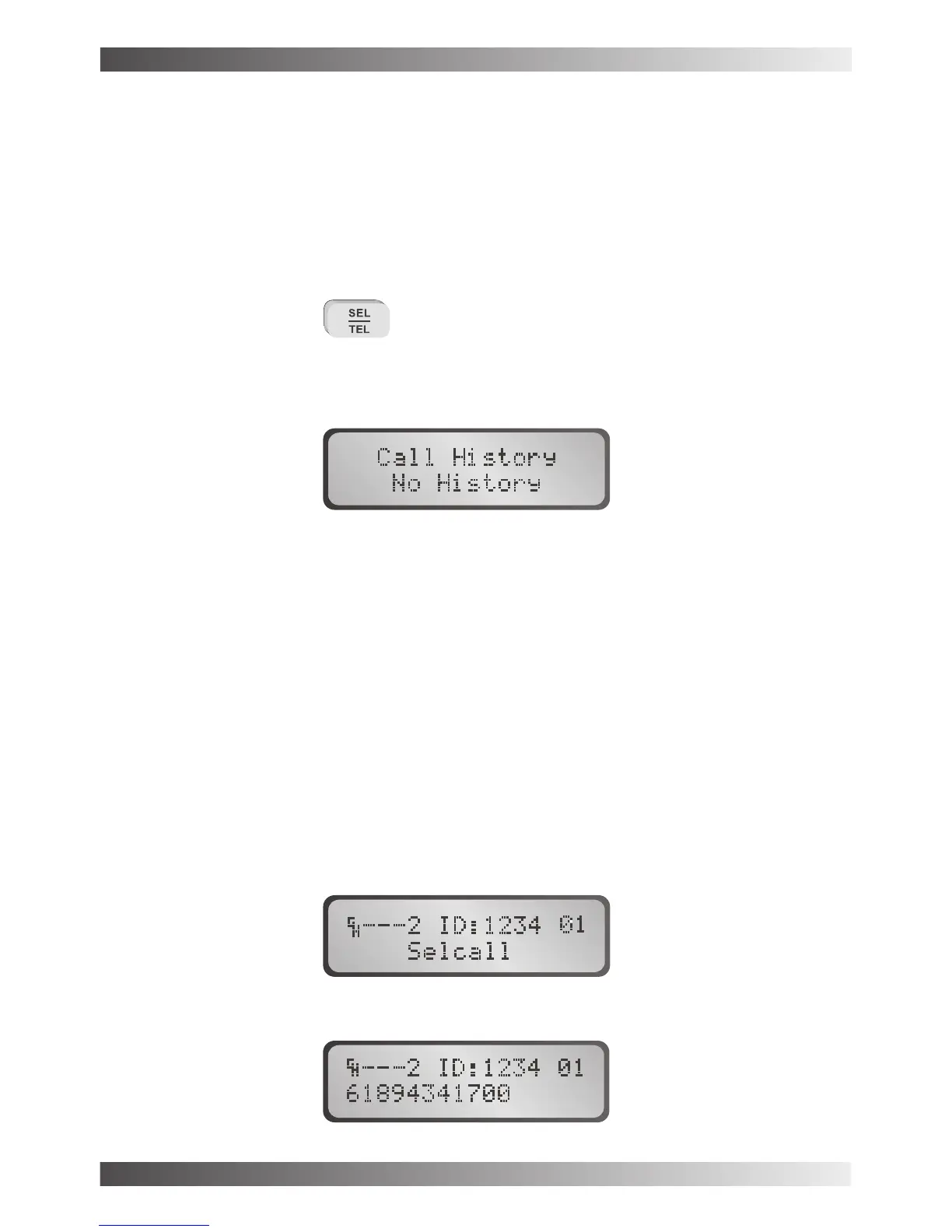 general scroll keys to scroll through the available selcall history. If there is no selcall history