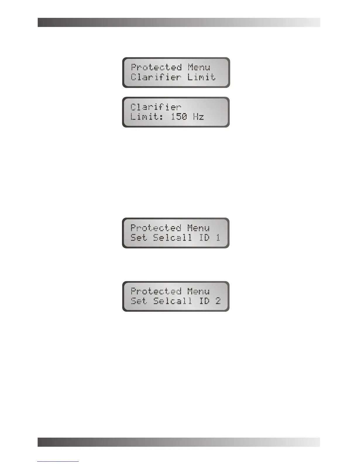 This menu item allows the user to set the clarifier limits on land mobile channels with