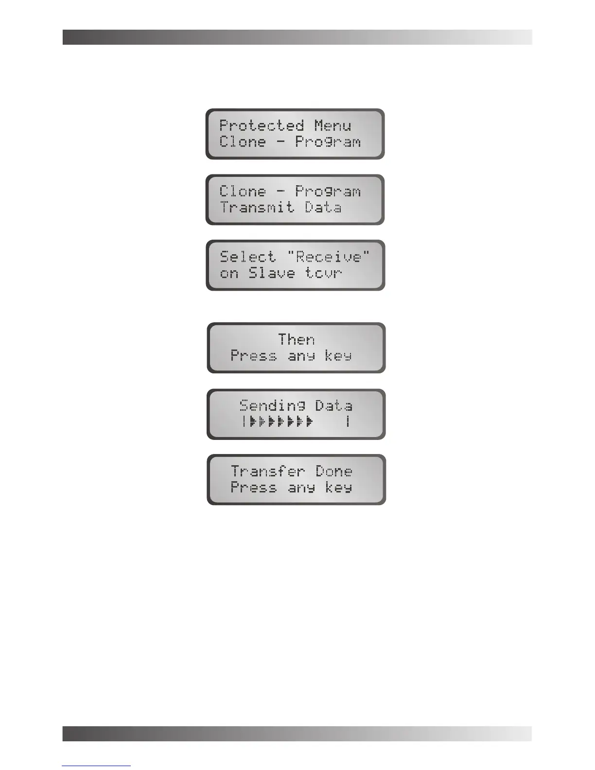 On the master transceiver (transceiver containing the information to be cloned) select