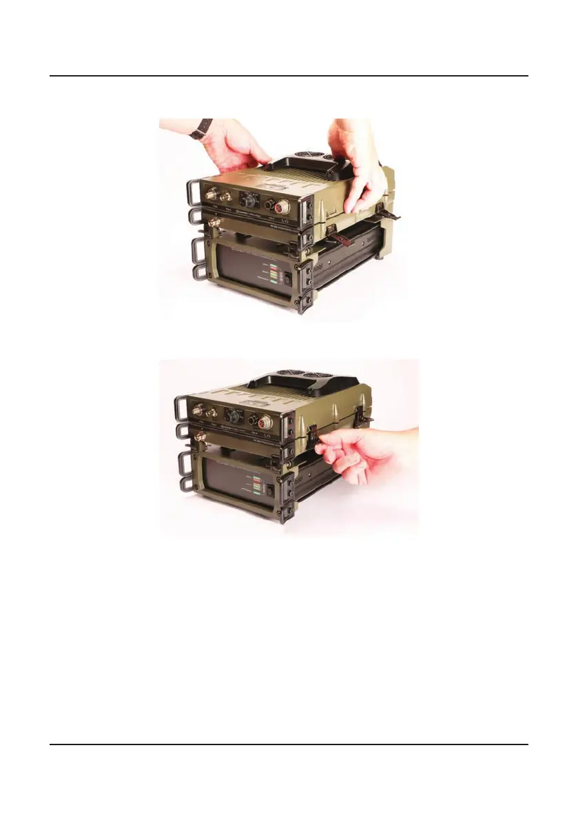5. With the side latches folded outwards, place the PRC-4090 transceiver on