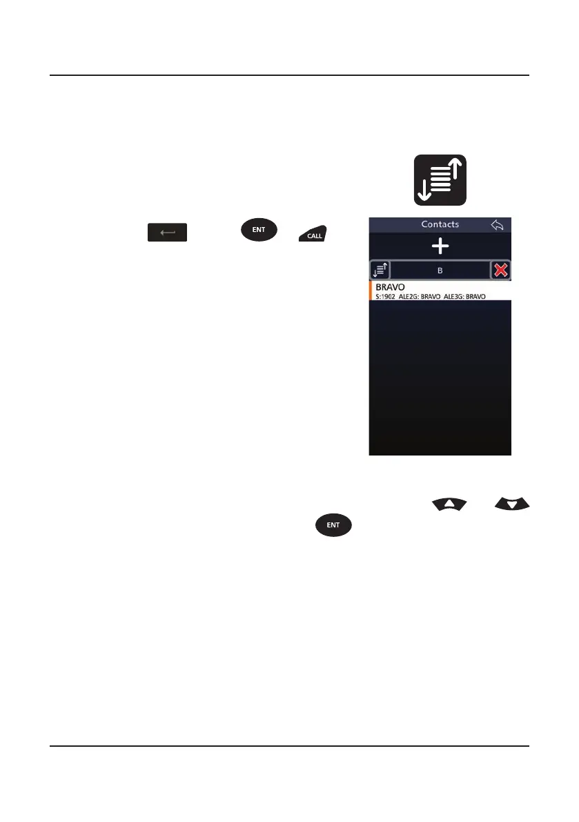 The contacts list can be sorted alphabeti-