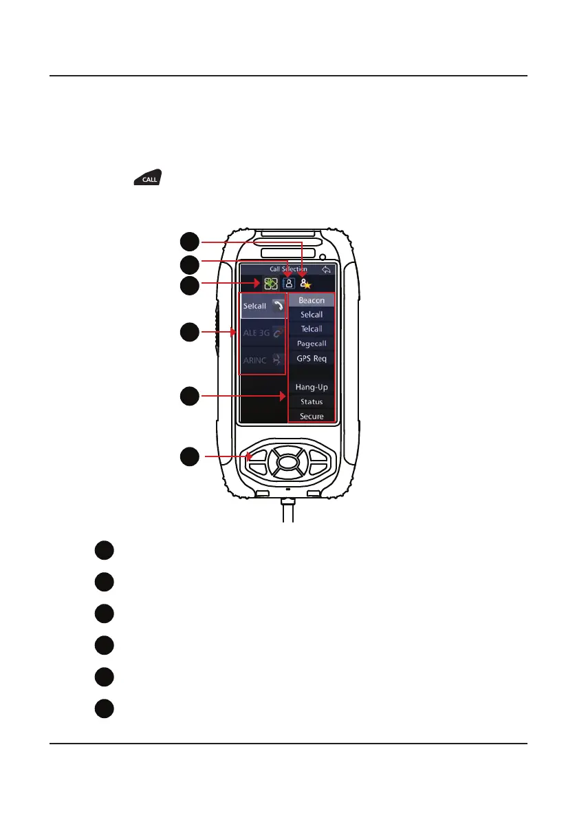 From this menu, Selcalls, Contacts, Favourites and Call History can be accessed.