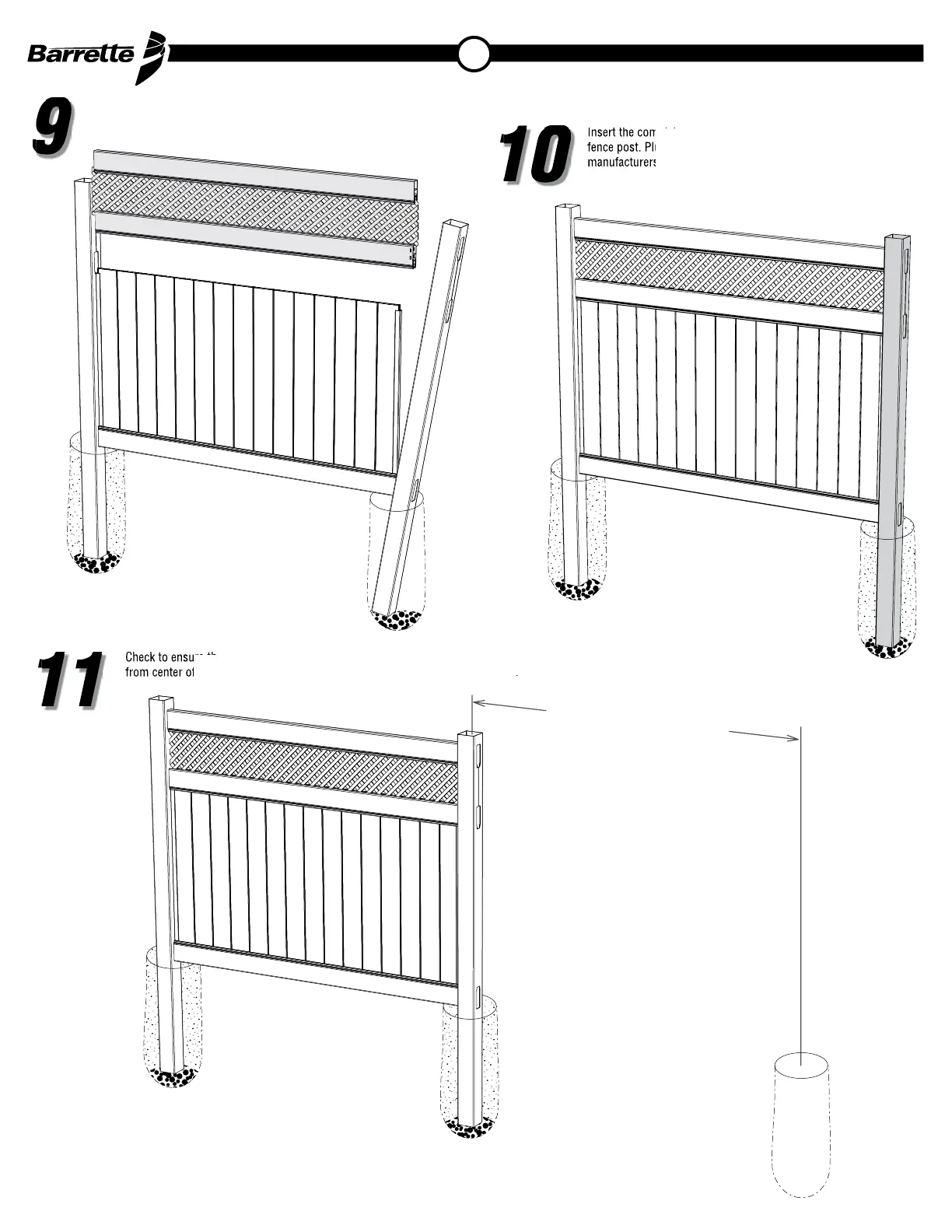 fence post. Plumb and level the post and add concrete according to