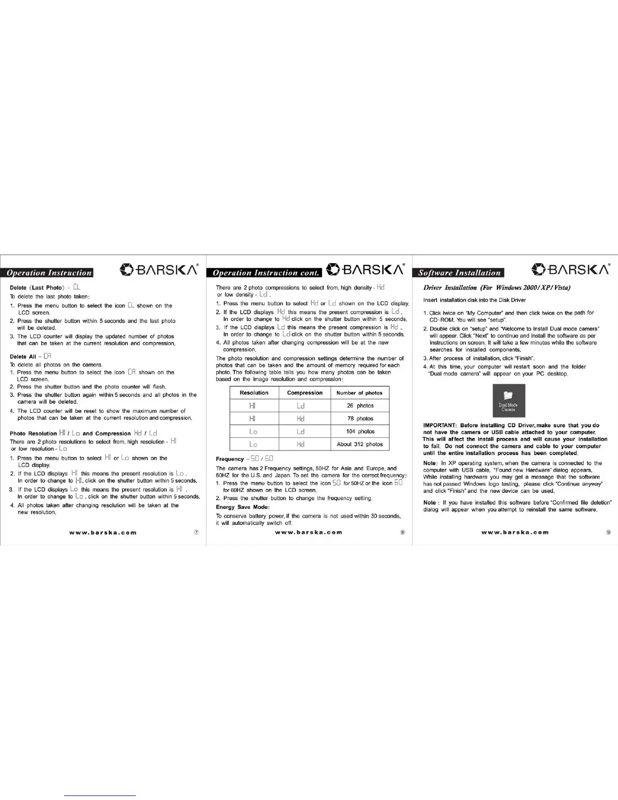 Barska Point N' View AH11358 - Advanced Operation Instructions; Photo Resolution and Compression; Software Installation Guide; Driver Installation for Windows