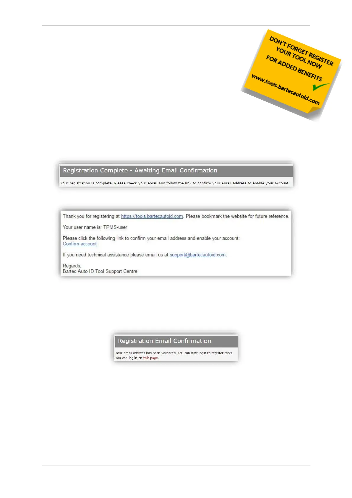 To register a tool, navigate to the Bartec TPMS website at