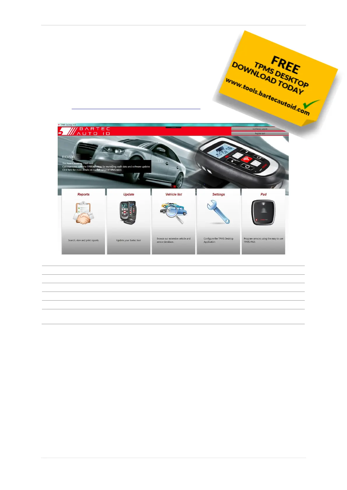 manage Bartec TPMS tools on the computer. The TPMS