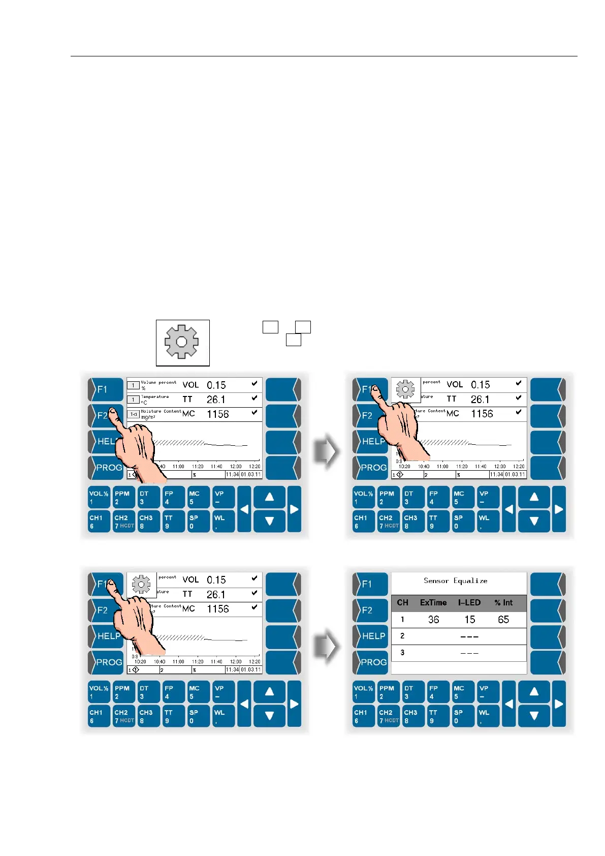 Then touch F1 key, („A. EQUAL.“) to start the automatic sensor equalizing