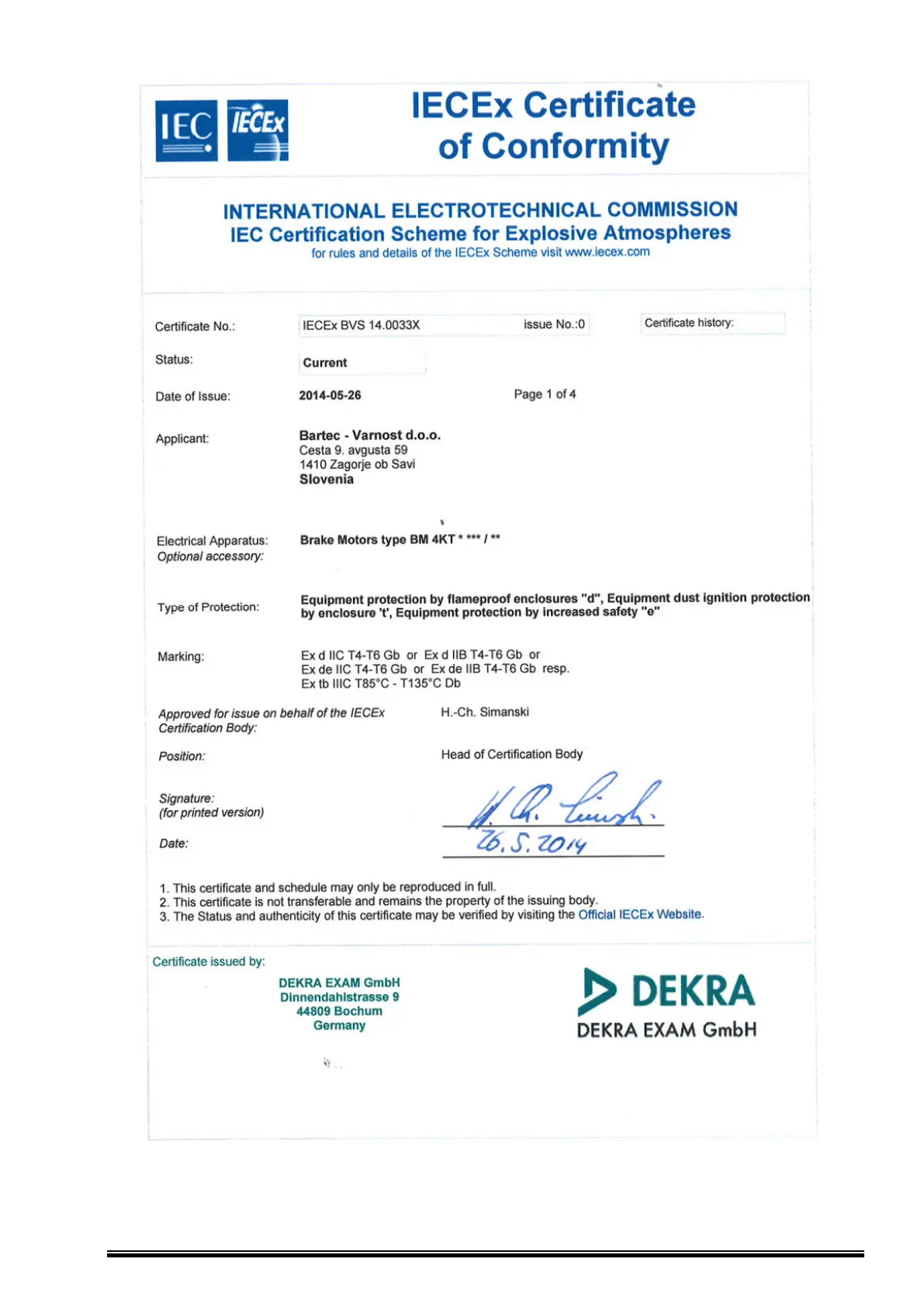 Bartec Varnost BM 4KTC71 - IECEx Certificate of Conformity; Type of Protection; Explosion Protection Marking