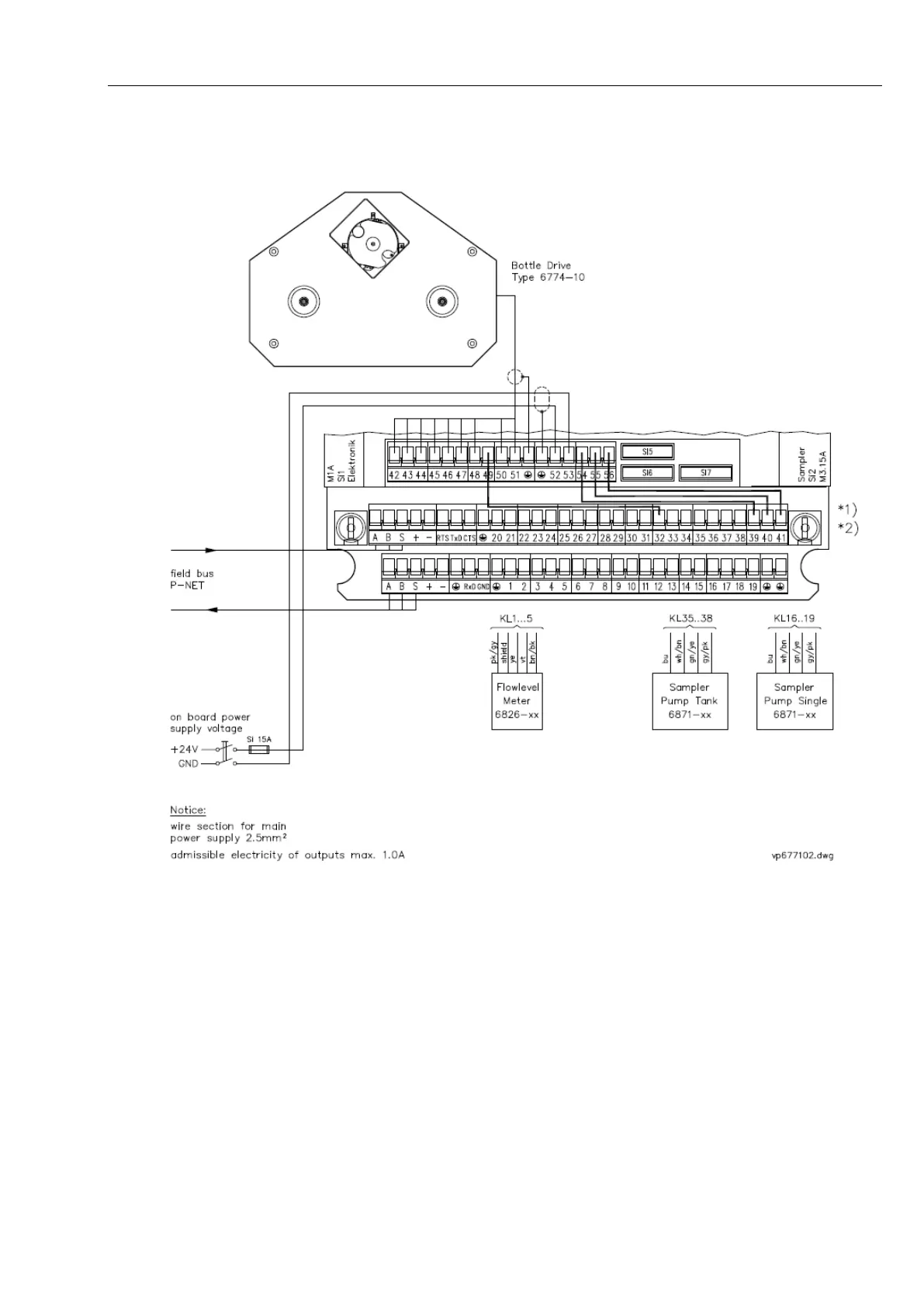 (= on-board power supply + sampler motor voltage) have to be connected to