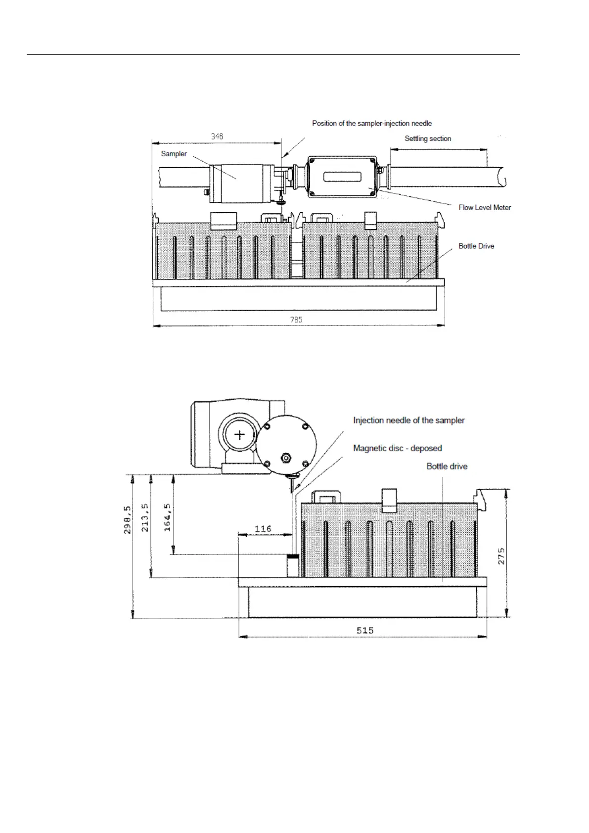 Fig. 2 and Fig. 3 show the dimensions for the sampler and bottle drive lay-