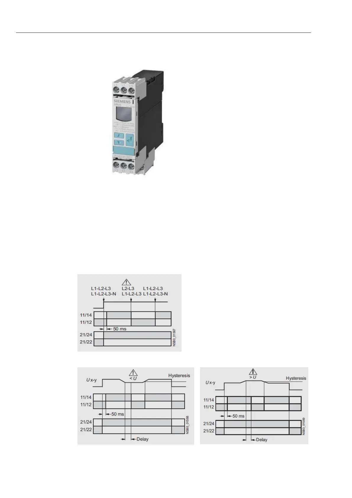 The unit monitors a three-phase supply for phase sequence, phase failure and
