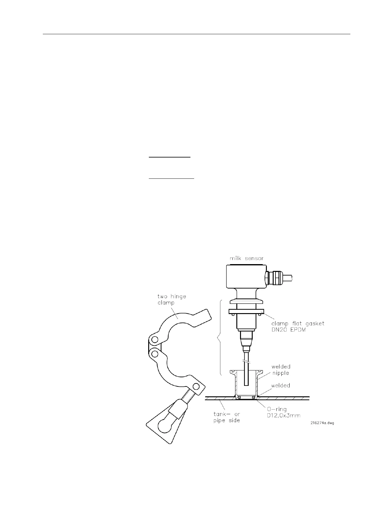 no. 335326) (attached to milk sensor), insert it in the welded socket and,