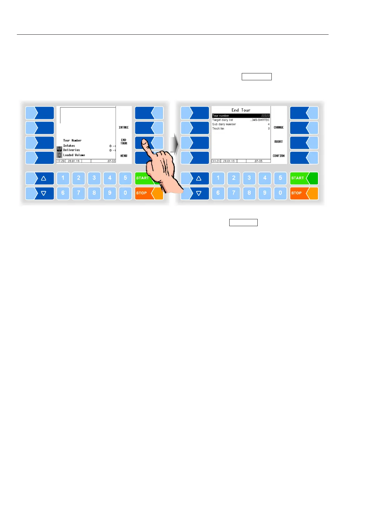 ● Confirm the entries with the soft key CONFIRM ; the "Tour log record" is