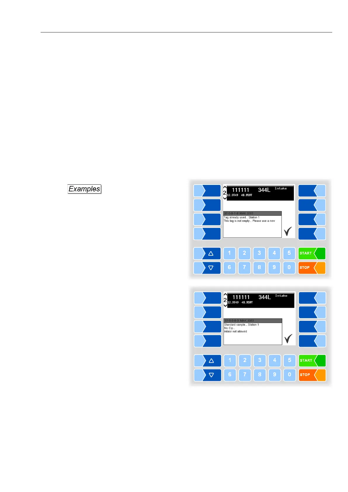 detected, the intake cannot be started. A corresponding message appears on
