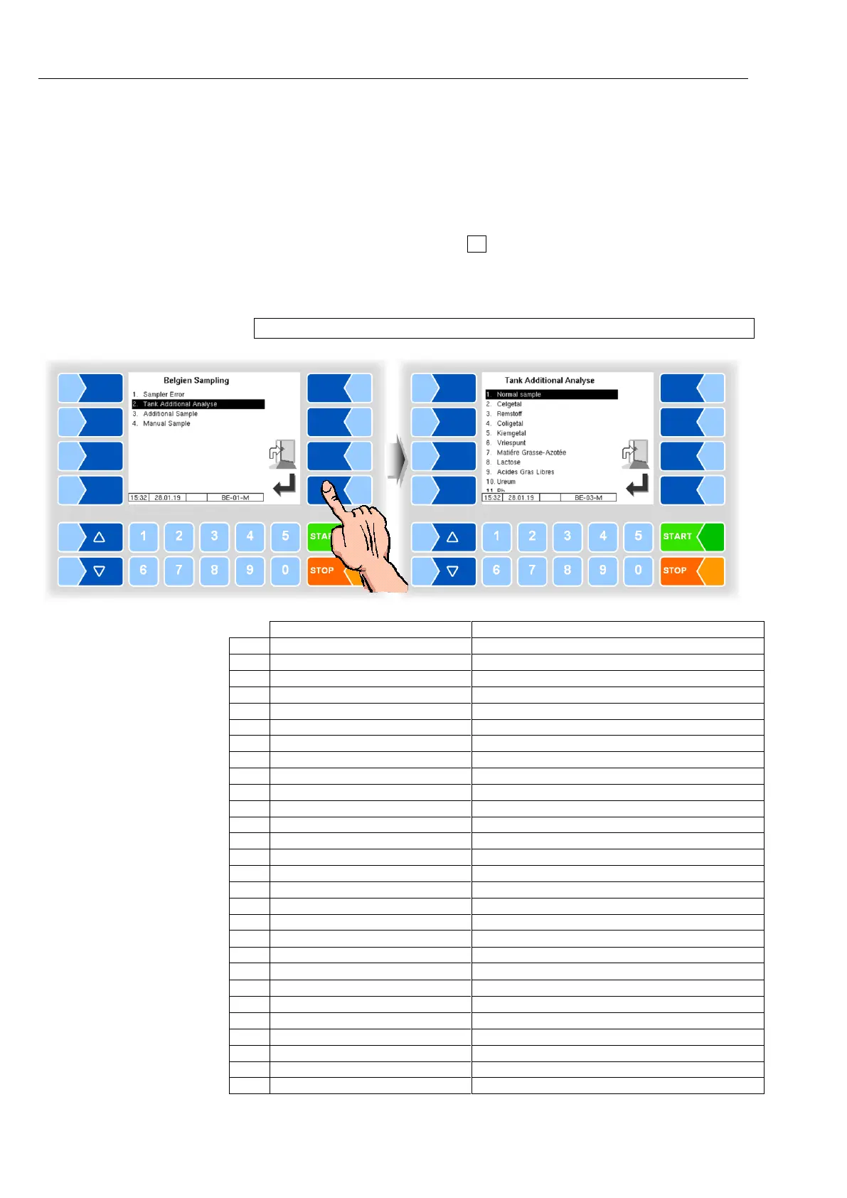You can also make the selection directly by touching the corresponding num-
