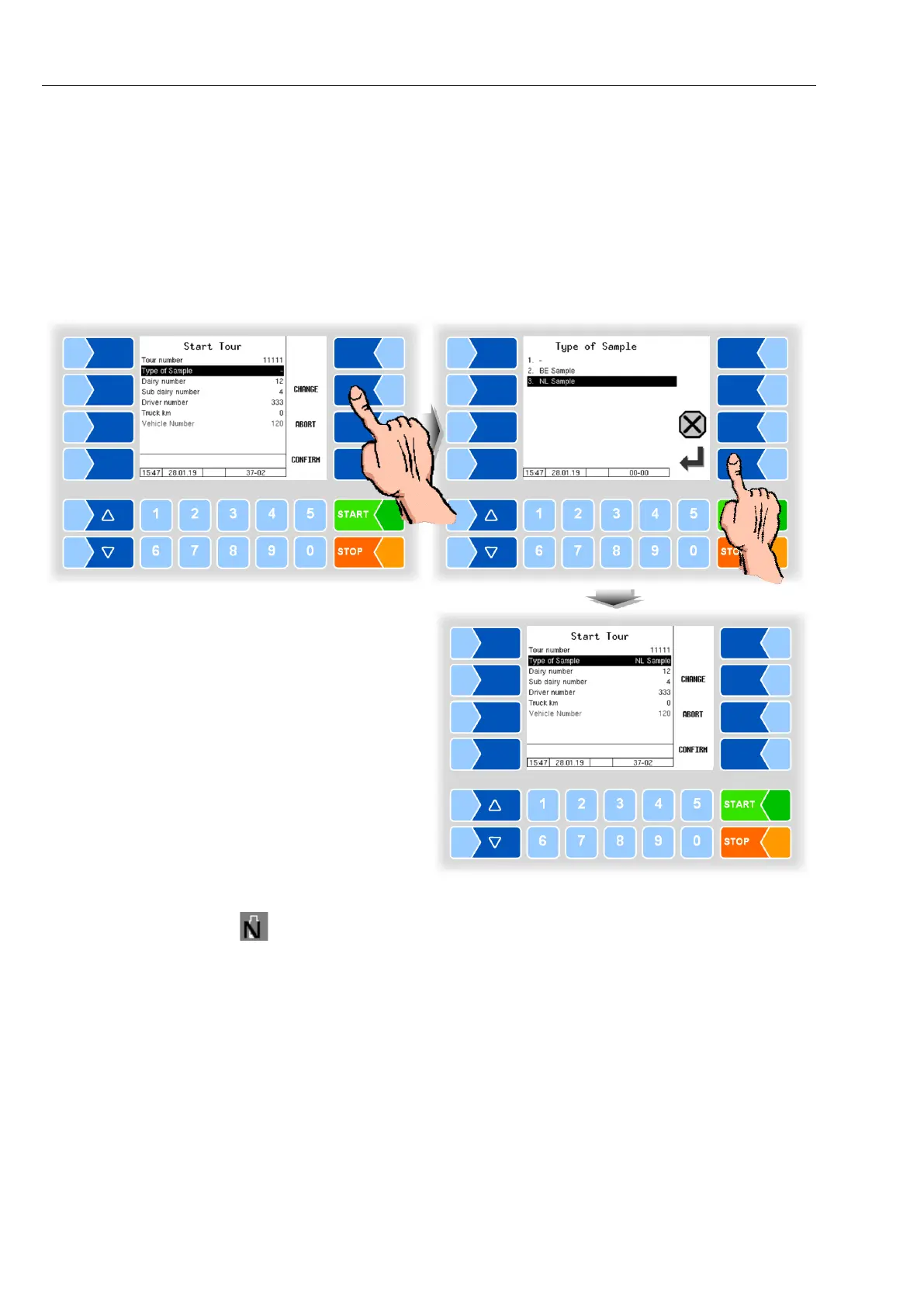 ● Select the sample type "NL Sample" at tour start.