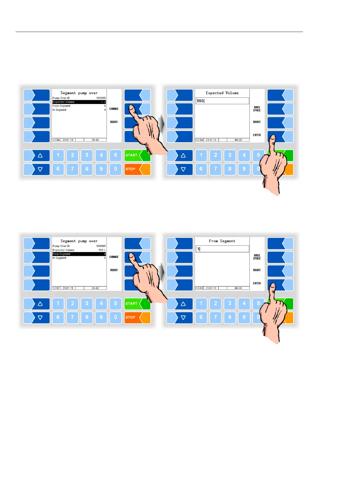 Enter the number of the segment from which the milk is to be pumped.
