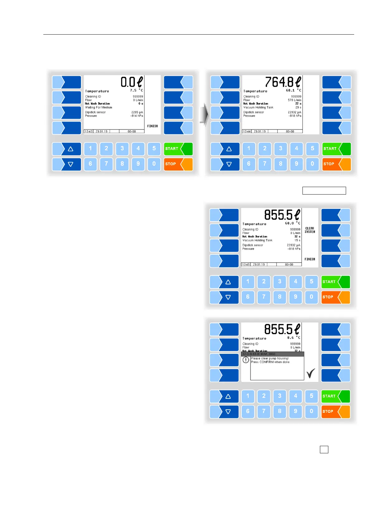 As soon as the flow rate reaches 0 L/min., the soft key CLEAR SYSTEM is