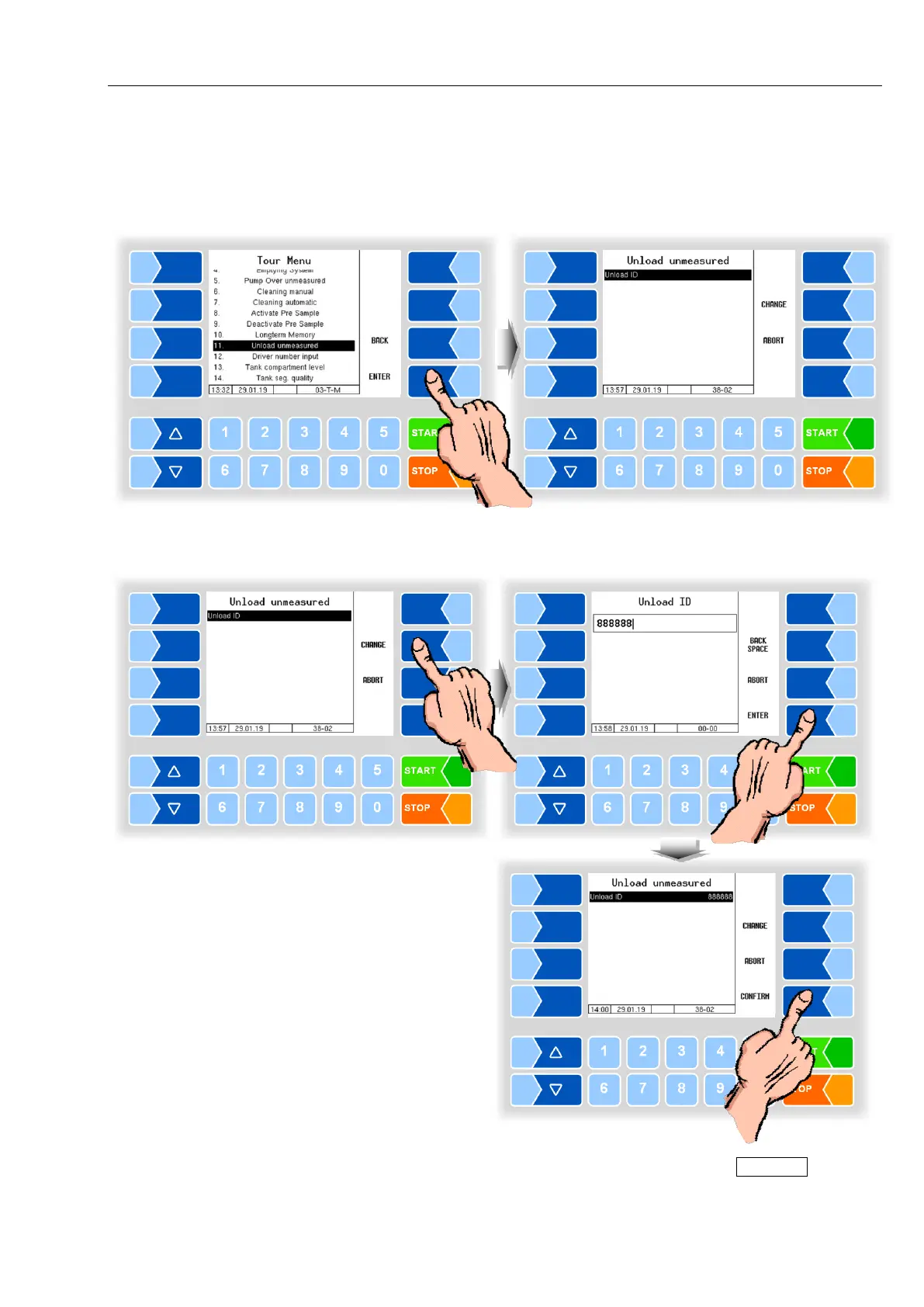● Start the unloading by confirming the Unload ID with CONFIRM .