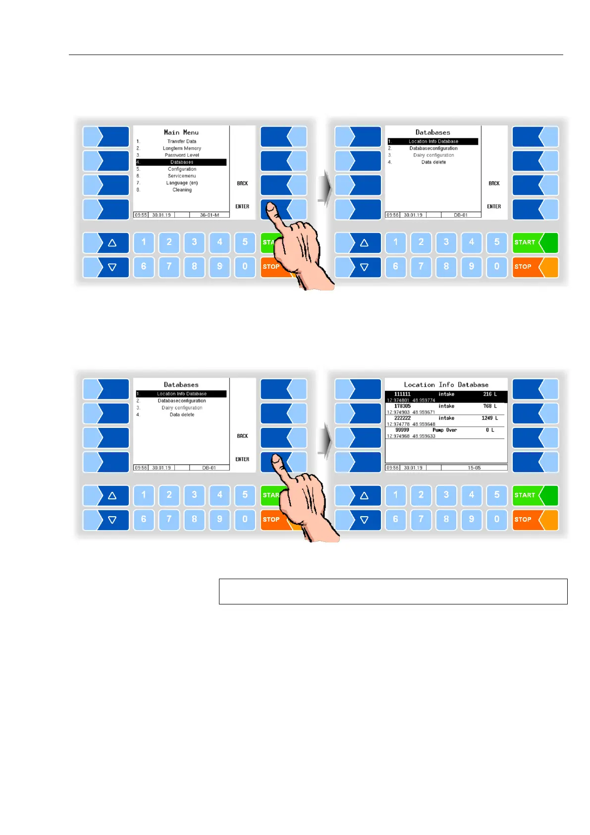 Access to other functions in the Databases menu is not possible at the driver