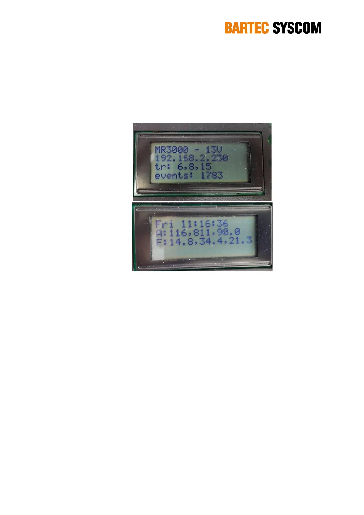 Figure 2.4.3. First (a) and second (b) screen of the internal display of the MR3000DMS.