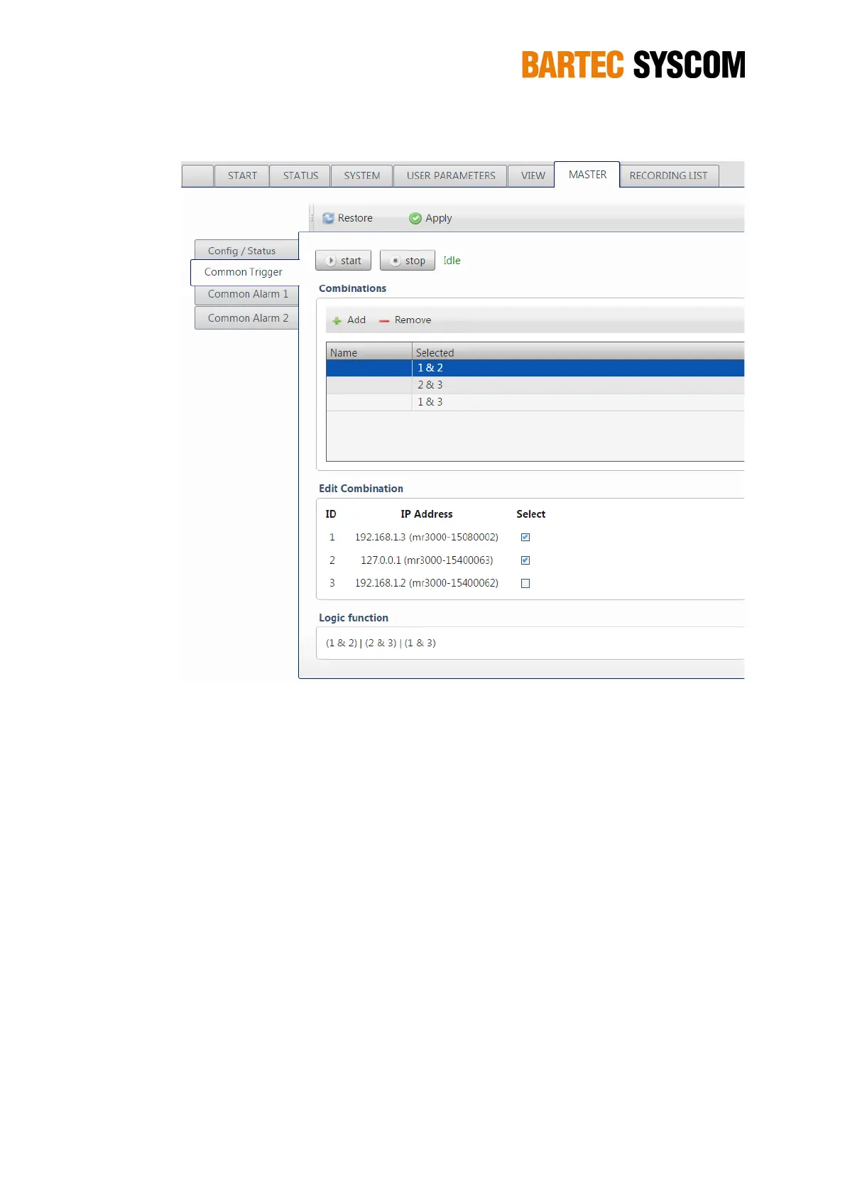 Figure 4.1.4. Subsection dedicated to the setting of the common trigger.