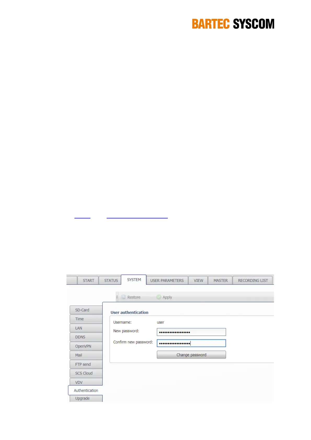 Here you can change the password of the DMS. The password is used for the WebUI access and